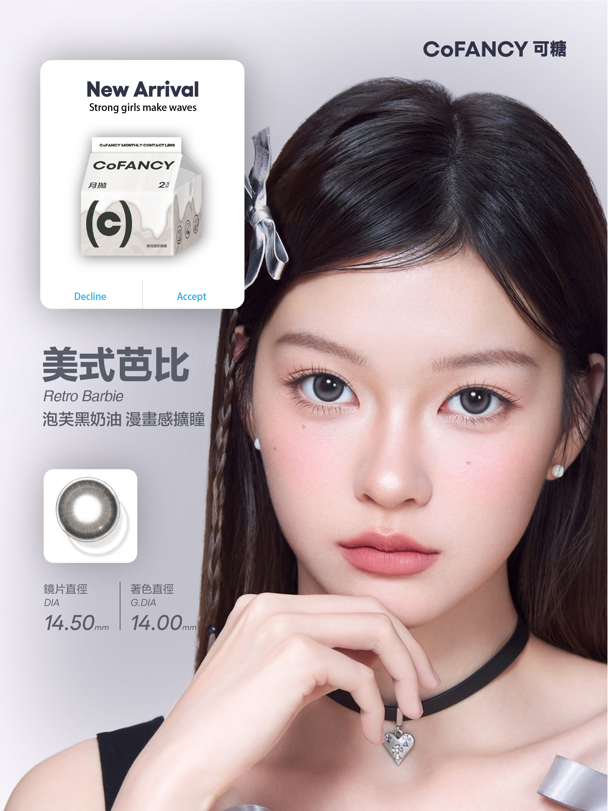 奶油感黑灰色🩶一秒get漫畫同款芭比電眼