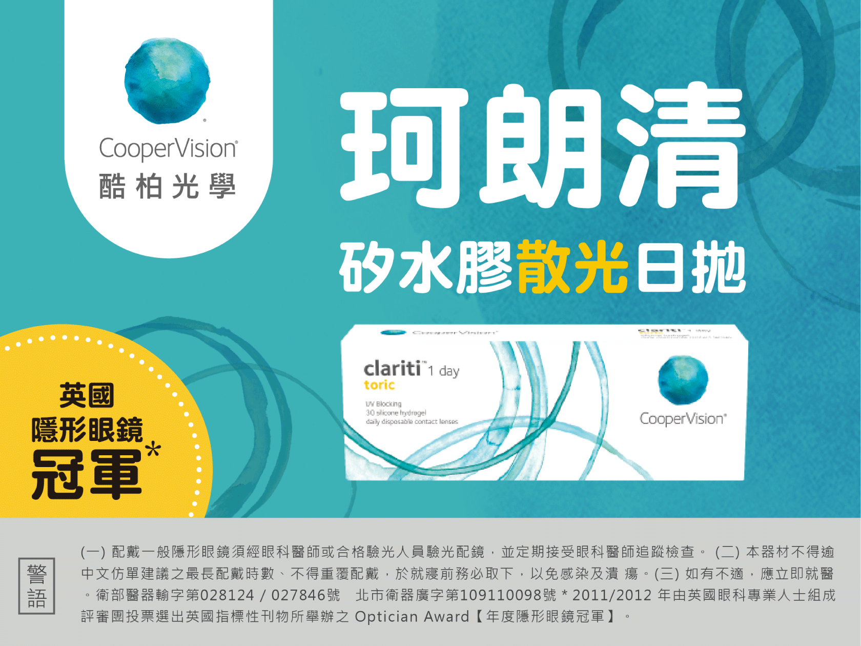 酷柏珂朗清散光日拋(30片裝) clariti® 1 day (475~900度)_矽水膠_透明散光日拋_【酷柏_CooperVision】30pcs