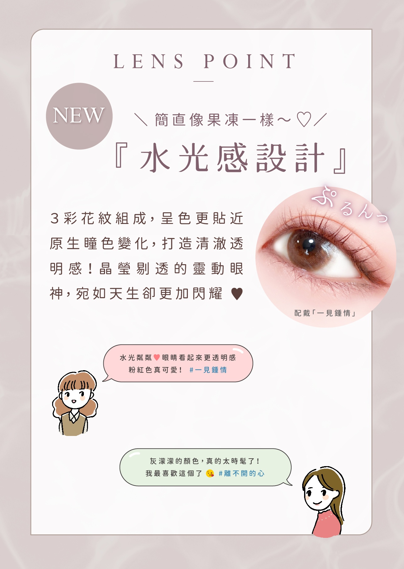 ・配戴一般隱形眼鏡須經眼科醫師或合格驗光人員驗光配鏡,並定期接受眼科醫師追蹤檢查。本器材不得逾中文仿單建議之最長配戴時數、不得重覆配戴,於就寢前務必取下,以免感染或潰瘍。如有不適,應立即就醫。消費者使用前應詳閱醫療器材說明書。消費者聯絡信箱:service@chooselens.com