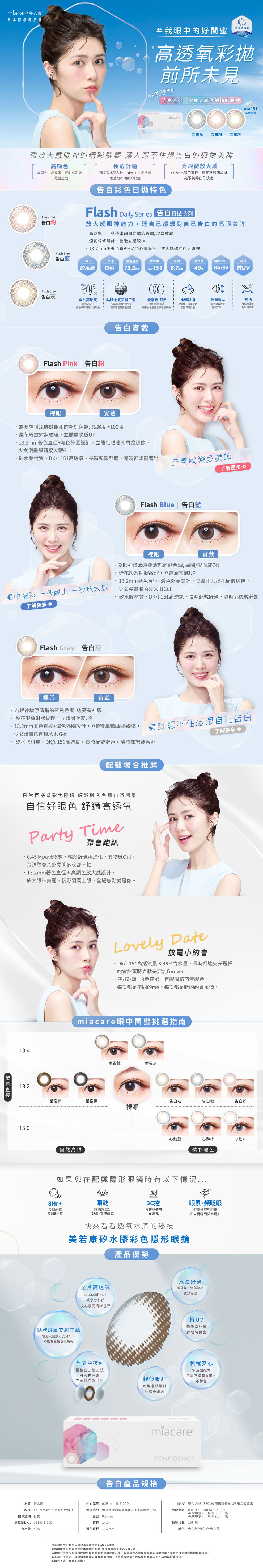 美若康 miacare 告白粉(10片裝) Flash Pink_矽水膠_彩色日拋_【美若康_miacare_綻美】10pcs