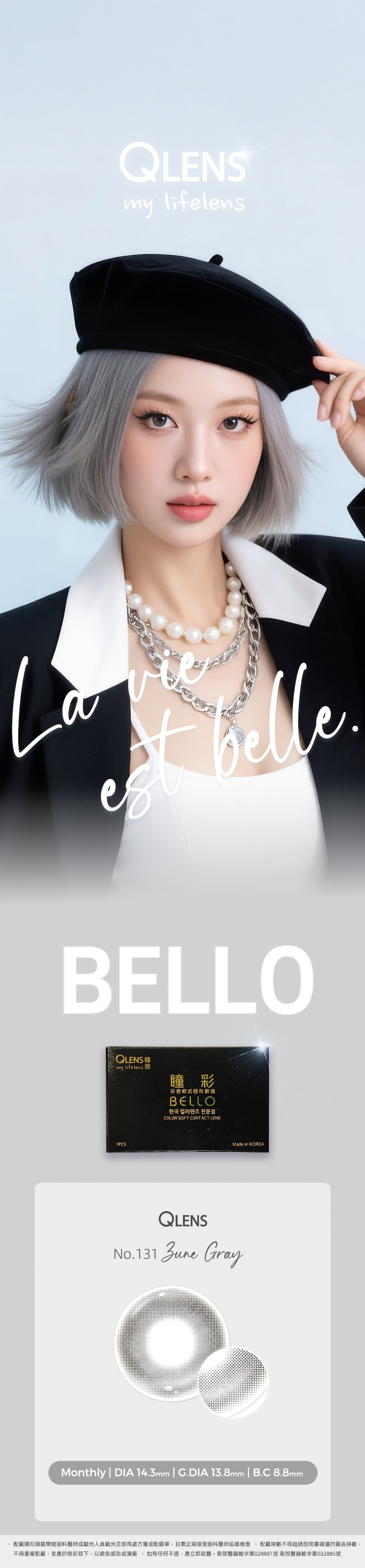 QLENS #131 灰(1片裝) Gray_彩色月拋_【QLENS_瞳妝_ZUNE】1pc